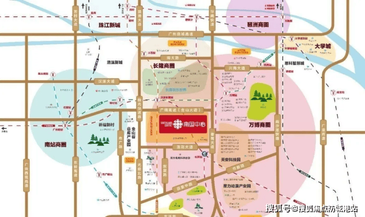 地段,永远是房地产价值的第一定律。瑞华南国中心之所以备受瞩目,关键在于其占据了广州南部最为珍贵的“黄金三角”枢纽位置。这一位置,由长隆旅游度假区、万博中央商务区以及里仁洞国际新城三者共同构成,形成了一个独一无二的“商—旅—创”融合生态圈。瑞华南国中心恰好位于这个三角形的几何中心,不仅坐拥三大板块的顶级资源辐射,更成为了连接彼此的关键节点。这种极致的占位,赋予了项目无可比拟的区位优势与巨大的发展潜力。