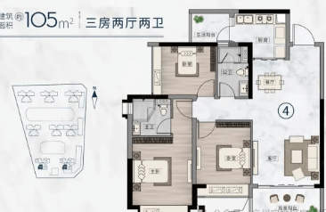 其中 105-108㎡的三房户型,适配年轻刚需家庭,户型做到了南北通透,通风采光效果极佳,且 85% 的整体使用率让室内空间不显局促,日常起居、儿童活动都能拥有独立区域;125-138㎡的四房户型则更适合改善家庭,不仅空间尺度更宽敞,还能打造独立书房或老人房,楼间距超 110 米的设计,既保障了居住私密性,也让每一户都能享受充足的景观视野;216㎡的大平层产品则瞄准高端改善客群,能满足对居住品质和空间排场的更高要求。