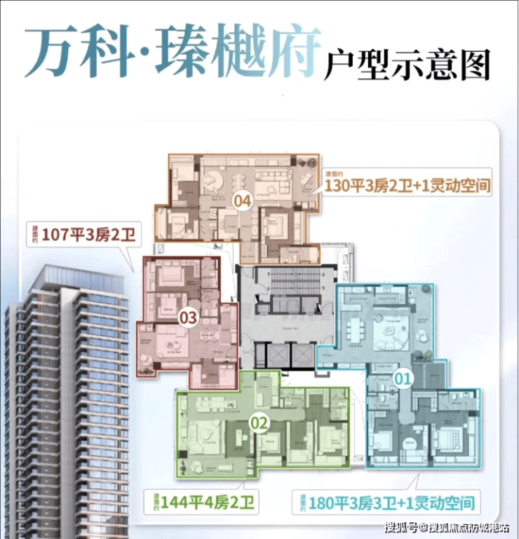 万科瑧樾府全盘仅规划 115 席珍藏房源,主推建面约 107㎡-130㎡-144㎡-180㎡的三至四房户型,全面覆盖了首次改善、进阶改善、终极改善等不同家庭结构的居住需求。所有户型均采用广州最新的住宅设计规范理念打造,空间利用率高,得房率表现优越,最大程度减少了空间的浪费,让每一寸空间都能服务于业主的居住体验,真正实现了空间价值的最大化。