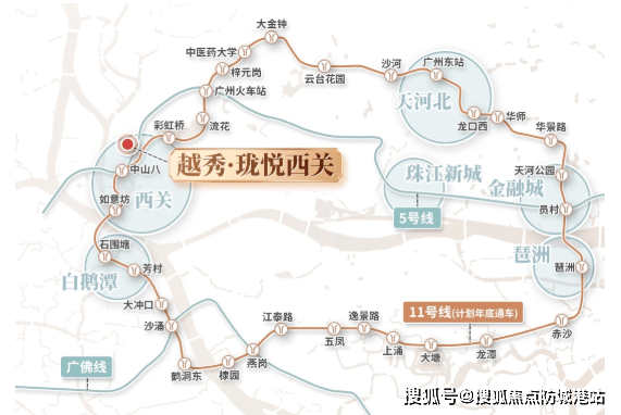 交通配套是越秀珑悦西关的一大亮点。项目距离5号线和在建的13号线二期交汇处西场站约1公里,步行约15分钟;距离在建的11号线中山八站约1.4公里,步行约21分钟;距离8号线彩虹桥站1.4公里,步行约22分钟。通过这些地铁线路,乘坐5号线可直达越秀或珠江新城,8号线能到海珠西、中大琶洲等地,11号线作为广州超级大环线,设有多个换乘点,可直达珠琶、白鹅潭、天河北等地,预计今年底开通,在建的13号线二期开通后去往多个CBD将更便捷。此外,附近还有南岸路等公交站点,公共交通十分便利。自驾方面,虽距离主干道不近,但相对安静,且周边有中山八路、东风西路、内环路等干线,开车去越秀或天河较为顺畅。整体而言,交通条件优越,随着地铁线路的逐步完善,未来出行将更加四通八达。