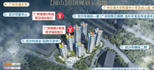 商业配套:项目西至设施生态公园,东联南海神庙,构建了集 TOD 商业、文化街区、都市服务、生态社区等为一体的漫游活力轴,重点打造 “双岗 TOD 中心、都市服务中心” 两大综合商业地标及 “双岗、沙涌” 两大休闲文化街区,且双岗 TOD 中心已确认引入华润万象系商业运营,未来商业氛围将十分浓厚。周边还有鱼珠、大沙地等商圈环绕,美林 live 天地、山姆超市、惠润广场、潮楼名店城等商超配套,一站式满足居民的品质生活需求。