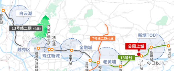 项目直线距离约400米,就是地铁13号线沙村站。从这里出发,搭乘地铁,1站到黄埔(沙村站-南岗站),而待明年13号线二期开通后,亦可实现一轨直抵珠江新城(沙村站-冼村站)。