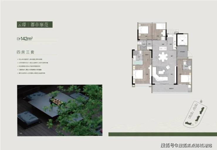 142平方米:同样是南、北朝向,4室2厅3卫,兼具实用性和奢华感。