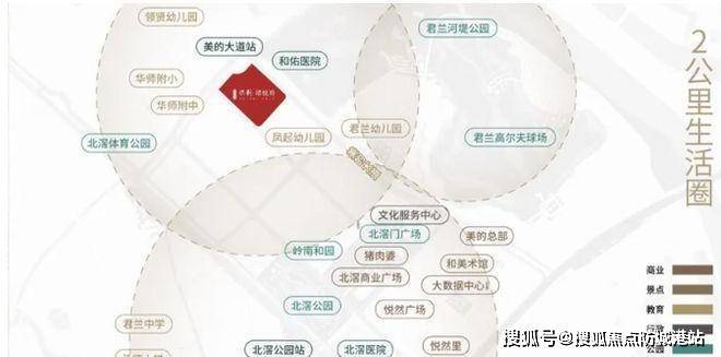 休闲:周边 3 大绿肺公园环绕,北滘公园、北滘门广场、君兰河堤湿地公园,为居民提供了亲近自然、休闲散步、锻炼健身的好去处。同时,2 大地标网红打卡点岭南和园、和美术馆,也丰富了居民的文化艺术生活,在家门口就能感受岭南文化的独特魅力与现代艺术的碰撞。