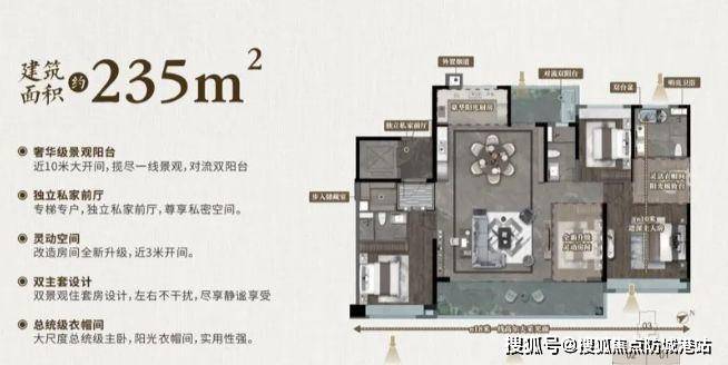 235㎡天幕大平层:作为保利华南 3.0 豪宅时代的升级产品,有着最具尺度感的餐厨客一体空间。总统套房级别的主卧,不仅空间宽敞,还配备双主套设计,主卫双台盆且明亮卫浴。18 米一线高尔夫景观面,推窗即能享受绝美景色,得房率也非常高,尽显奢华大气。