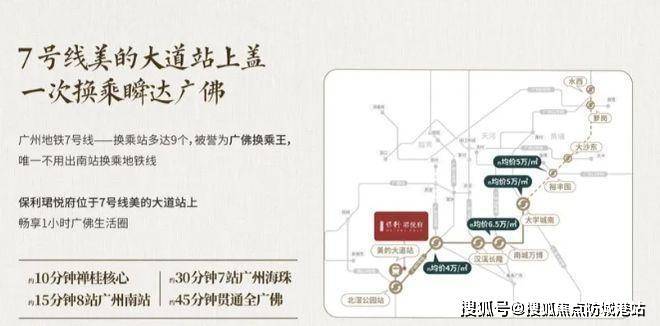 交通:作为佛山唯一纯地铁上盖豪宅项目,地铁 7 号线美的大道站就在家门口。地铁盘不少,豪宅盘也常见,但地铁上盖的豪宅项目却极为稀缺。便捷的轨道交通,无论是前往佛山其他区域,还是去往广州等周边城市,都极为便利,大大缩短了出行时间,提升了生活效率。