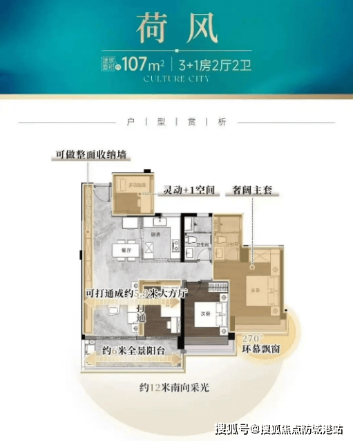 在空间分配上,项目强调“卧室平权”——不仅主卧配备套房,次卧与长辈房均保证三面下床、可放置1.8米床及衣柜书桌,避免常见改善盘“牺牲次卧换大厅”的弊端。例如,107㎡四房拥有12米南向采光面、6米阔景阳台及独立入户花园;128㎡四房打造约40㎡LDK一体化公区;181㎡大平层则配置近16㎡南向全景阳台、8米观景面及约4㎡入户鞋帽间,形成“内外双玄关”动线。