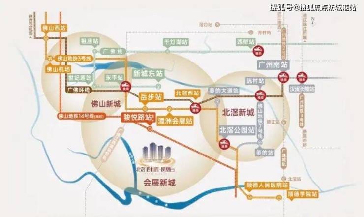 佛山14号线-骏悦路站(规划) (来源:佛山市顺德区北镇土地发展中心):距项目约500m,建成后从项目出发步行快速可及,可连通佛山3大重点板块禅城、佛山新城、北滘新城;
