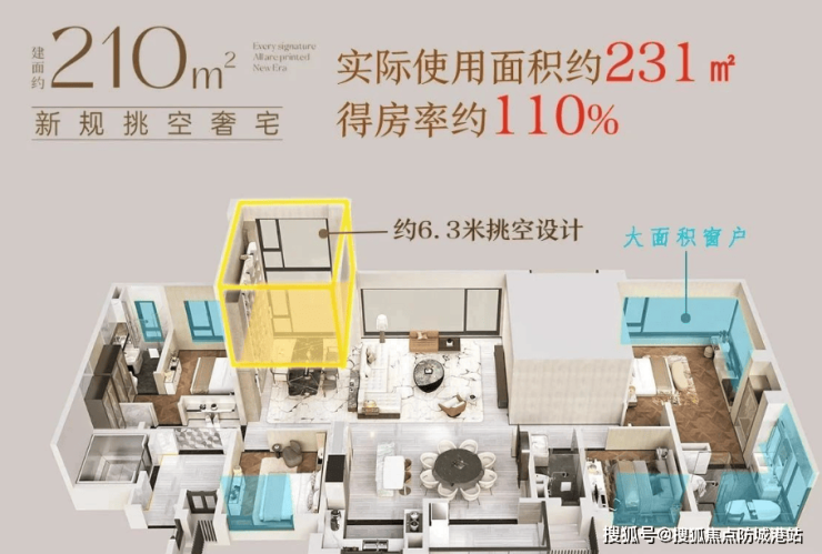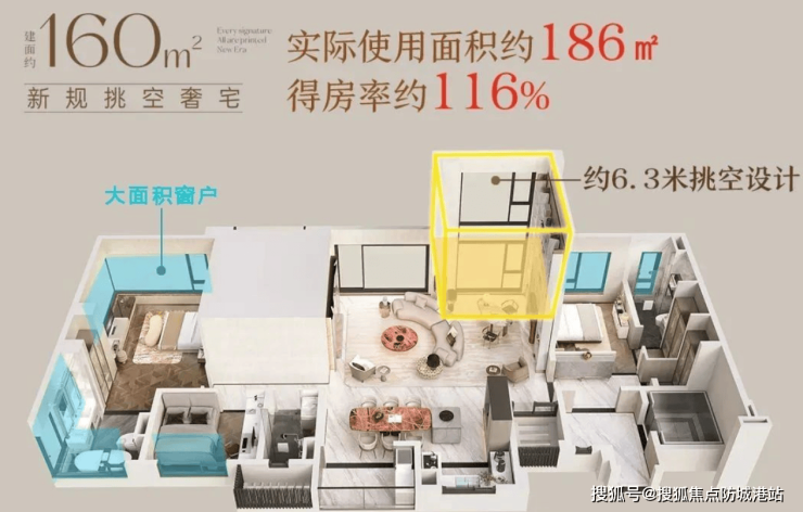 项目主要在售1栋,面积段为160-210平方米,得房率达约110%以上,户型设计亮点如下: