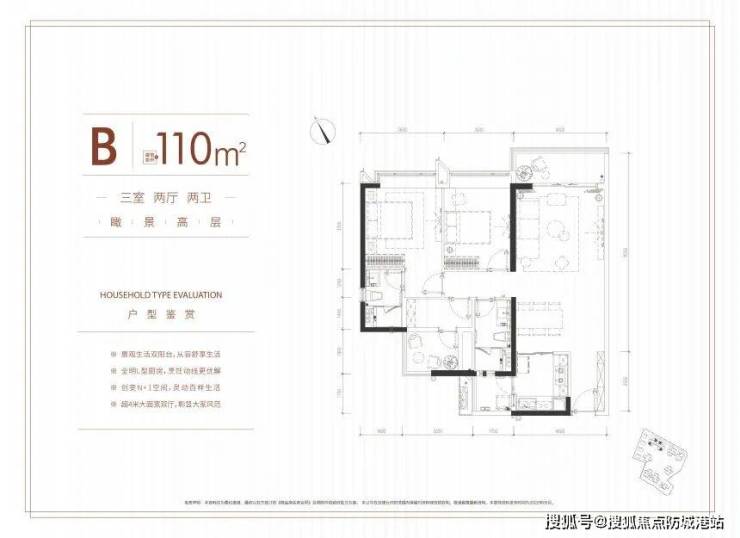 110㎡的三房两厅两卫有两种细分户型,总价大概 420-440 万元。