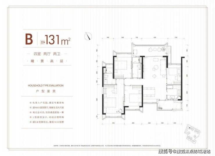 改善家庭可以重点看 131㎡的四房两厅两卫,总价 500-520 万元,均为南北对流设计。