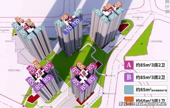 户型设计出色。涵盖 68、85 和 110 平的三至四房,实用率达到 100%以上。68 平户型直面园林景观,客餐厅约 3.6 米开间,南北通透,主卧约 4.2 米开间,270° 巨幕飘窗。85 平户型阳台、卧室全南向,客餐厅开间约 3.8 米,主套卧约 3.7 米开间,同样 270° 巨幕飘窗。110 平户型约 6.7m 超长景观阳台,主卧约 3.9 米开间,超 30 方豪华主套。空间布局合理,得房率高,能满足不同家庭需求。