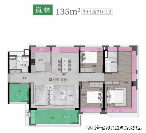 135㎡四+一房两卫,约15.2米全南采光面,畅享阳光