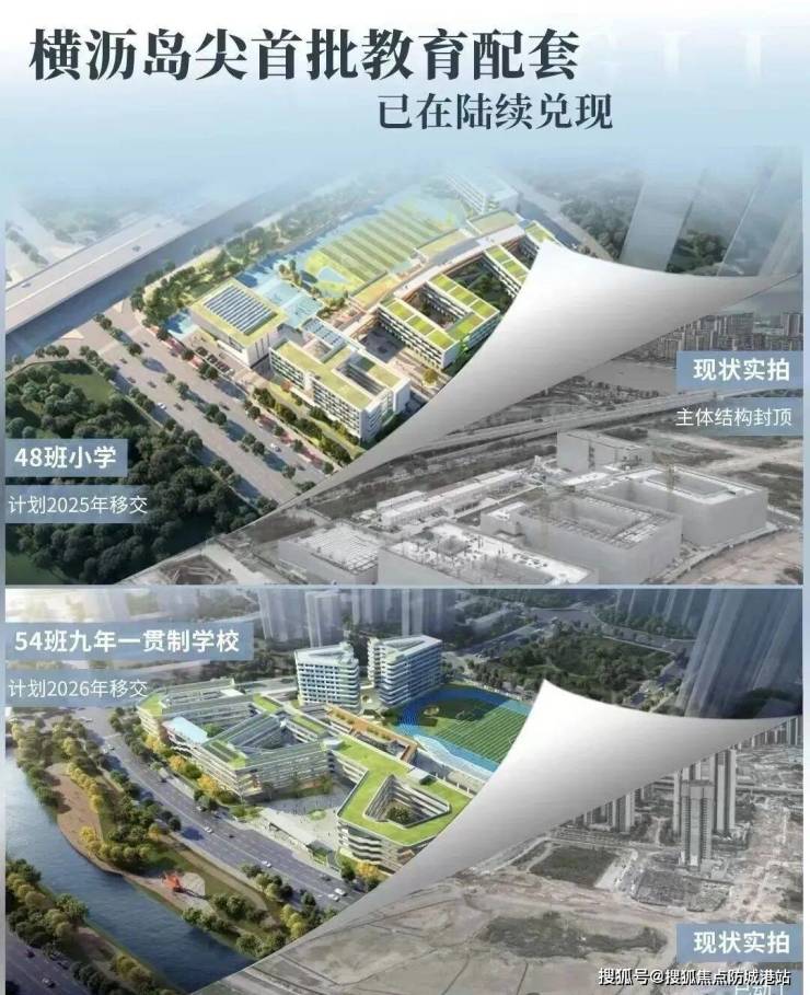 横沥岛上规划有多所学校,包括3所小学、3所九年制学校、1所十二年制学校及1所国际学校。其中,一所54班的九年制学校预计将于2026年投入使用,另一所48班的小学则计划于2025年启用。这些教育设施的建设将进一步提升区域的教育水平,为孩子们的成长提供了良好的环境。