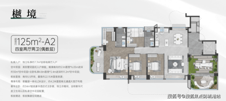 【招商林屿境】采用围合式布局,形成了中央大园林,确保了每栋楼都能享受到最佳的景观视野。在售户型涵盖了82㎡至125㎡的三至四房单位,满足不同家庭的需求。特别是其创新的空中花园设计,使得部分户型的实际使用面积大大增加,如84㎡户型可通过错层阳台设计实现6米挑高花园,极大地提升了居住体验。