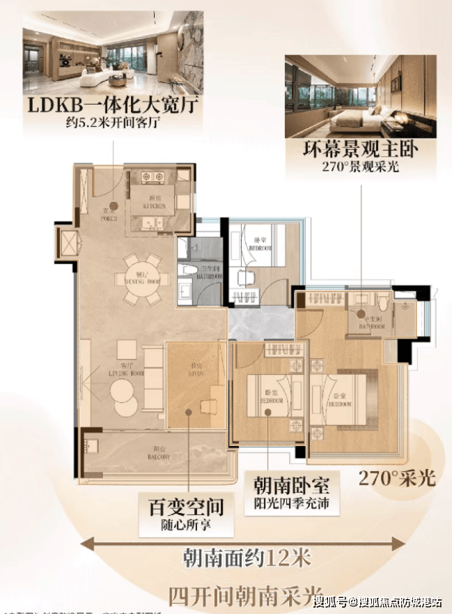 A:在现行建筑设计规范下,我们通常不以“使用率”作为宣传口径。但可以明确的是,得益于“零飘窗”、“V字板楼”、“薄墙体”等创新设计,本项目户型的套内实用空间效率极高。以建面约106㎡四房为例,其客餐厅的实际使用感受,经大量客户对比,普遍认为相当于传统设计约120-128㎡户型的空间体验。强烈建议您亲临实体样板间感受。