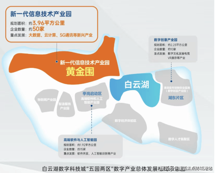 白云湖分为东区、西区、黄金围片区,东区主打数字经济文化产业+地铁22、24号线;西区主打新兴产业跟人工智能+地铁8号线;黄金围主打信息技术等产业,预计未来容纳人口28万人,就业人口41万人。项目处于这样的发展区域,能优先享受产业发展带来的红利,未来潜力值得期待。