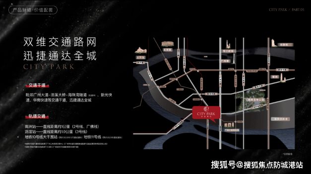 在主干道交通方面,项目依托“四横四纵”主干道路网,构建高效便捷的自驾出行体系,实现20分钟纵横城央核心。四横涵盖环城高速、工业大道、新港东路、新滘西路,四纵包括广州大道、新光快速、华南快速、东晓南路,无缝接驳广州环城高速、华南快速干线等交通大动脉,自驾出行极为便捷。从项目自驾出发,30分钟内可直达珠江新城、琶洲CBD,15分钟可达海珠广场、北京路等核心商圈,20分钟可达广州南站,30分钟可抵达白云机场,同时依托长达45公里的珠江环岛路,可快速连接琶洲、珠江新城、白鹅潭、广钢新城等核心版块,轻松实现全城快速通达,兼顾商务出行与家庭休闲需求。