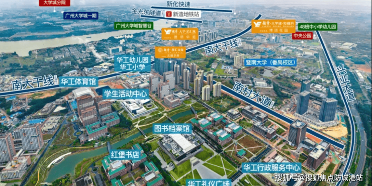 越秀大学星汇城位于广州番禺国际创新城新造板块,具体坐落于暨大番禺校区北边的南大干线边上,地处“南中国硅谷”广州大学城二期板块核心位置,同时占据广深港澳科技走廊、广州科技创新轴、南大干线经济带三大黄金智慧轴交汇点,区位优势得天独厚。