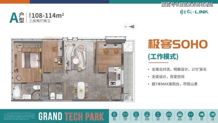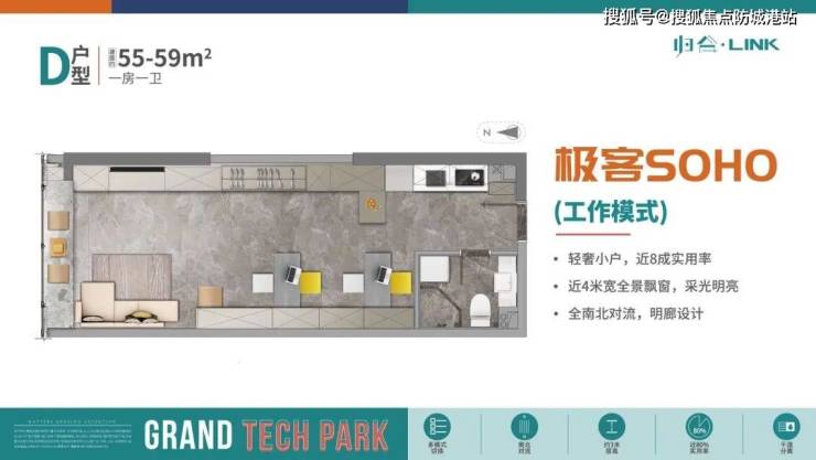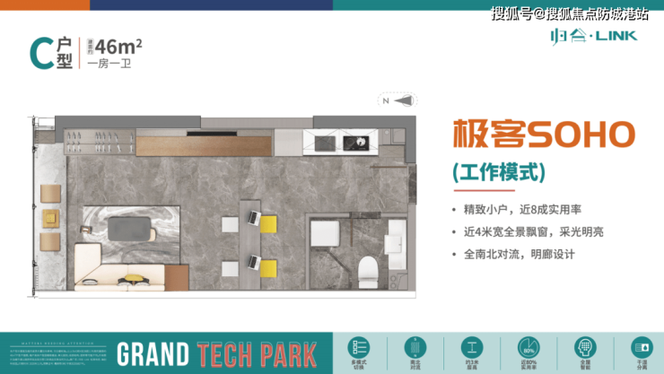 【会呼吸的房子,全生命周期极客SOHO】建面 46-115㎡百变户型空间,无梁设计打造全南北对流的IMAX空间,实用率近80%,打造全生命周期百变极客空间,全明廊设计270°全景采光,南北对流通透舒适