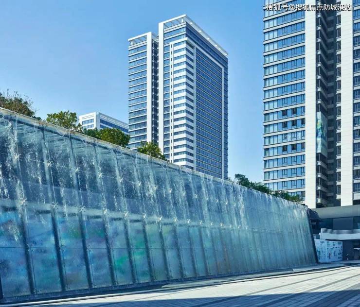 (不得不提的是,这里除了山色,还有水景。60米宽IMAX水幕瀑布是项目的特色名片。瀑布背靠满眼绿荫的望月山,水流高差达10米!在山水交融之间,整个项目的建筑就像融入了大自然的艺术品一样)