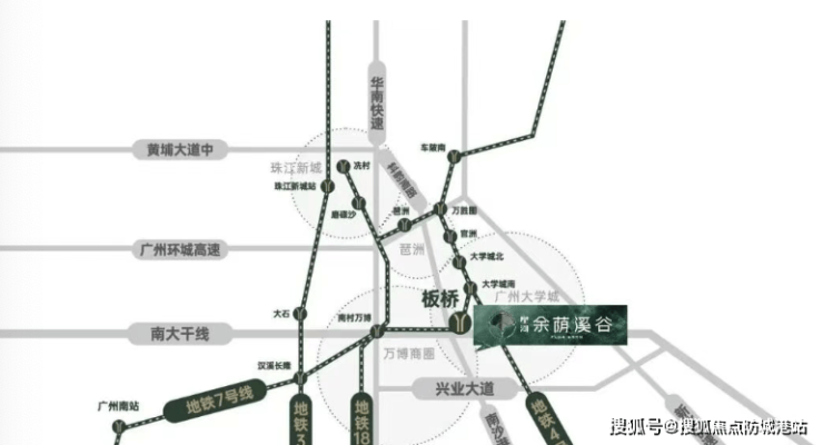 🔹南大干线:东西向主干道,10分钟直达万博,20分钟到广州南站,30分钟至琶洲。