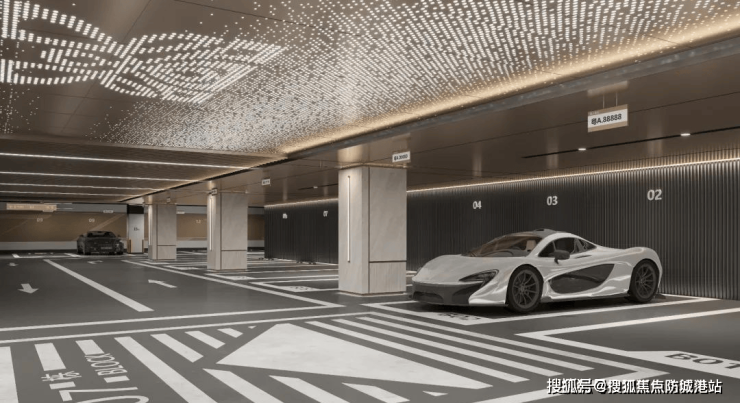 引入新风系统、智能照明系统、车库空气监测自换风系统和智能视频分析系统,打造地下车库高定车位区,匠心呈现艺术感星空顶。