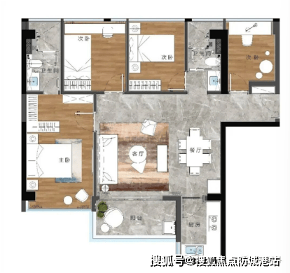 110-115㎡四房两厅两卫:改善优选,南北通透,双阳台设计,主卧套间带独立卫浴,空间开阔无浪费,得房率达 85%,满足二胎家庭、三代同堂居住需求。