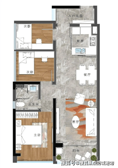 83-84㎡三房两厅一卫:刚需爆款户型,方正实用,动静分区明确,客厅直出阳台,三开间朝南,采光通风极佳,得房率超 82%,适合三口之家,低总价入手 CBD 核心。