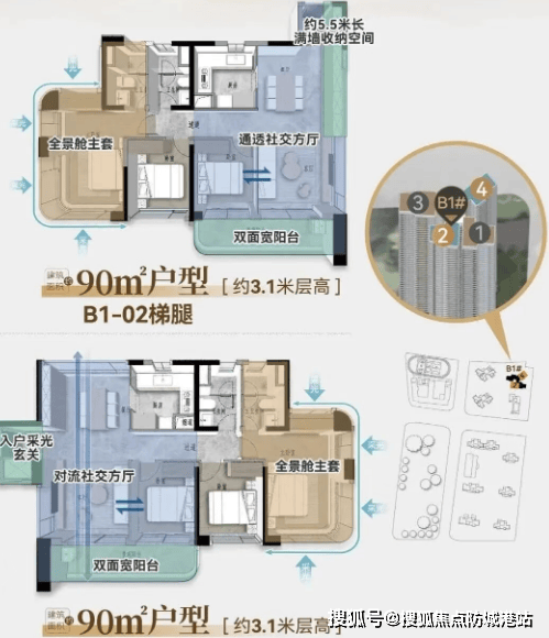户型设计与空间细节:90㎡起跳+超新规高使用率+六恒系统
