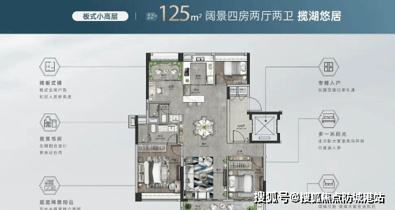 小高层95㎡/125㎡三四房:低密度设计,全南向布局,专梯独户,享有山景和湖景。