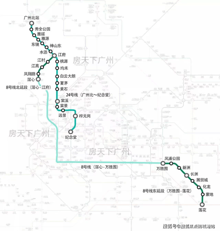 地铁24号线,即8号线北延段拆解线工程(广州北~纪念堂站),线路全长约31.6km,为全地下敷设线路,共设站18座,其中换乘站10座,平均站间距1.83km。