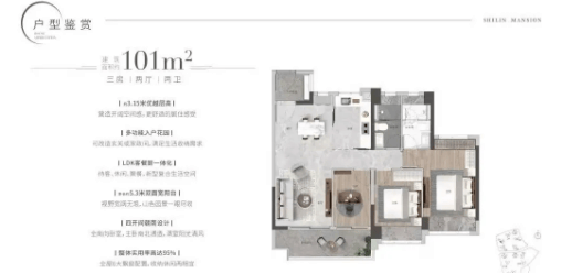 答:均为长岭居首个新规户型,得房率接近 100%,全南向布局,80cm 宽飘窗,层高 3.15-3.3 米,空间感与舒适度极高,实用率 95%-99%。