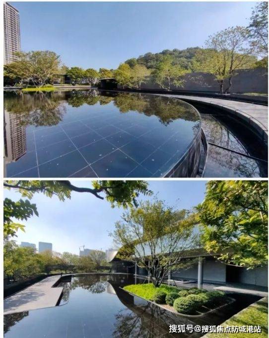 园林与公共空间:项目打造近4万平方米园林体系,包含约1.2万平方米外部漫步公园,以“一轴两园”为骨架,融合岭南山水意象。园区采用黑金沙石材铺装水景,倒映天光树影,营造静谧归家动线。社区规划“润系四大主题生活环”,设置吉山小座、创习书屋、多巴胺健身区等八大主题空间,覆盖全龄段社交、学习与运动需求,强化邻里互动与社区温度。