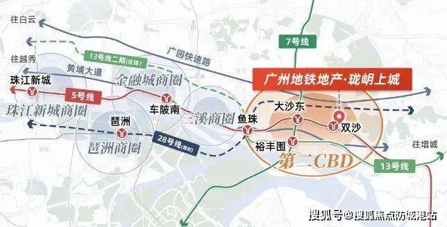 从交通体系来看,珑岄上城最大的核心价值在于地铁上盖属性。项目紧邻地铁5号线双沙站,部分区域距离地铁出入口直线距离约50米以内。TOD上盖住宅的价值优势在于可实现“出门即地铁”的通勤模式。5号线作为广州城市轨道交通主干线路,可快速连接珠江新城核心商务区、金融城商务板块以及城市东西向产业带。对于在中心城区工作的居民而言,交通时间成本显著降低。
