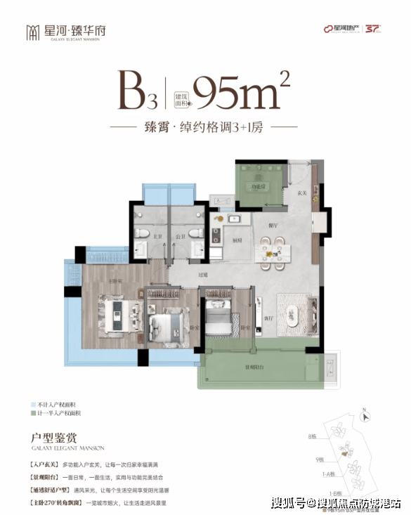 值得一提的是,这是星河进入广州19年来,在黄埔打造的首个大型综合住区,意义非凡。项目总建面达37.66万㎡,规划17栋32层住宅,提供约4500套高品质居所,主力户型涵盖85至125㎡三至四房,精准匹配首次置业、二胎家庭及改善型客群的多元需求。