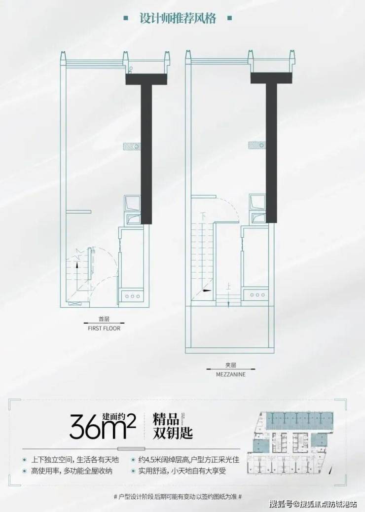 户型:36 - 74㎡复式小户型、176 - 343㎡江景大平层