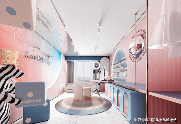 还有小叶榄仁林、雾喷等营造度假气息,弯月形亲水休闲卡座营造酒店式圈层社交场域,架空层空间追求与景观一体化融合,最大程度创造拥有与观看自然的感受。