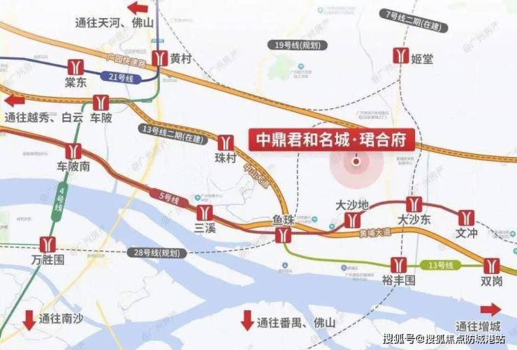 项目位于广州第二CBD核心区——大沙地,是黄埔最成熟的生活板块之一。这里不仅坐拥完善的生活配套,还因区位优势享有全城快速通达的交通系统。距离地铁5号线大沙地站约800米,同时毗邻在建的7号线二期大沙东站和13号线裕丰围站,未来形成三地铁交汇的优势格局。片区路网同样发达,广园快速、黄埔大道、中山大道与环城高速交织成“5横2纵”的通行网络,串联市区与湾区核心地带。规划中的有轨电车和多个码头将进一步拓展立体交通维度,使业主能够畅行广州全域,乃至与粤港澳大湾区高效衔接。占据中轴位置的中鼎书院上城,无疑兼具便利与前瞻性。