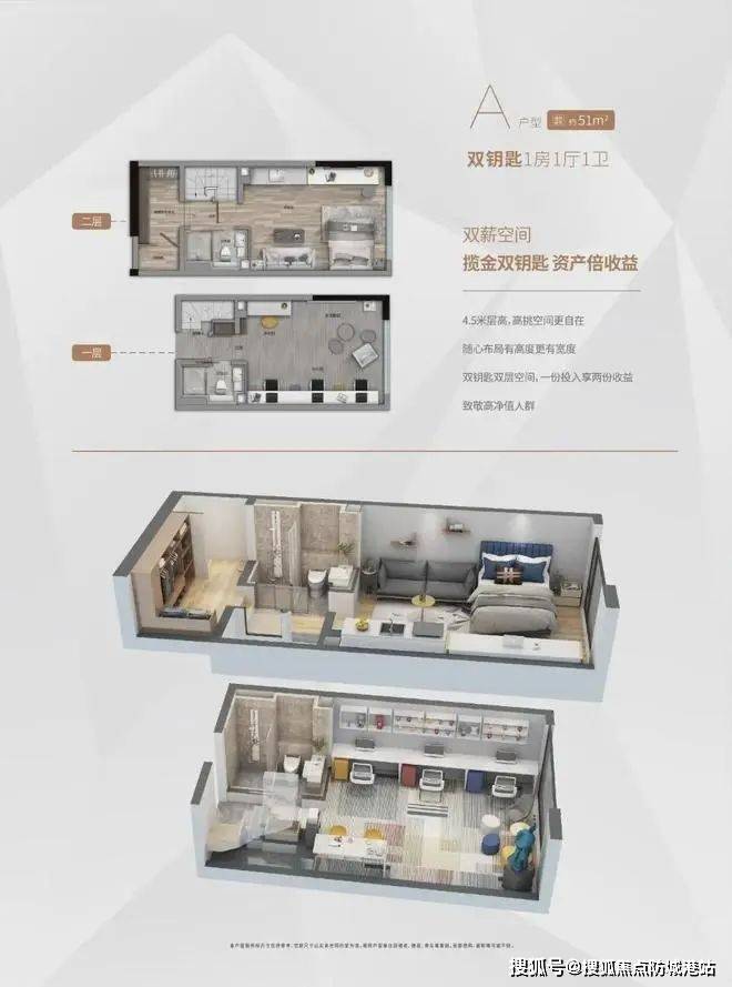 其次,项目在细节处理上的用心也值得称道。例如,每栋楼总高21层,负三层至三层设置为商业和停车场,其余楼层均为住宅。特别值得注意的是,这里的复式两层结构层高达到了4.5米,极大地提高了空间利用率。此外,4梯16户的设计,减少了高峰时段电梯使用的等待时间,提升了居住体验。