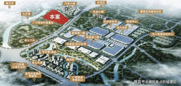 项目位于千亿汽车城板块核芯:周边以广汽集团领衔,已有42家新能源企业落户,2025年将超100家,汇聚10万+科创精英,60万+高薪企业人才。