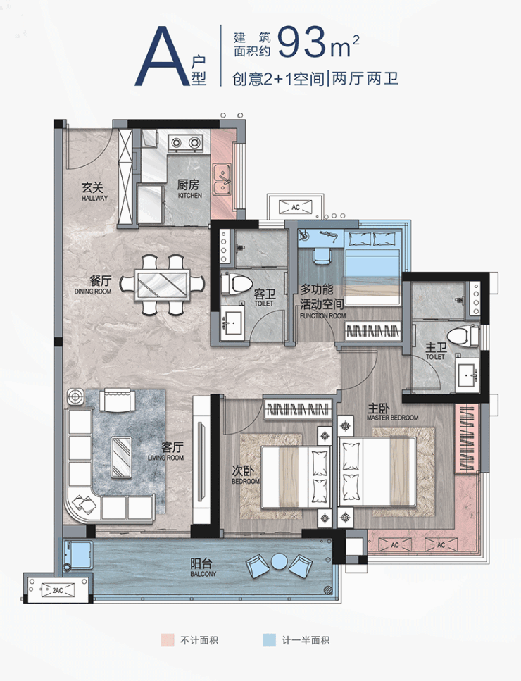 产品解析:93-128㎡湖景三四房,户户观湖、高实用率