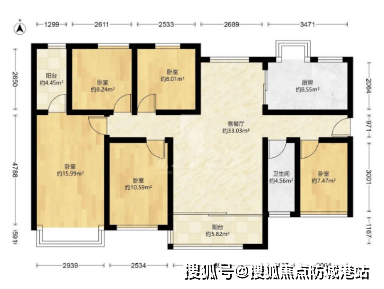 明日阳光项目的主力户型为建面约120㎡的精装五房两厅两卫,该户型在同面积段产品中极具竞争力,实用率高达87.5%,空间利用率堪称典范。户型整体方正,无浪费空间,南向布局确保了全屋采光均匀,视野开阔,景观优越。