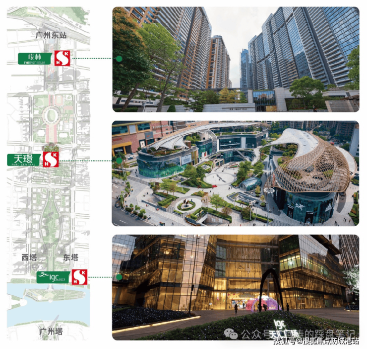 项目由国际知名设计机构执笔,以全球第五座ICC为规划蓝本,对标香港环球贸易广场,采用“东商务、西交通”布局,打造集住宅、商业、酒店、办公于一体的全业态综合体。建筑采用S型排布,沿原生态河畔布局,兼顾景观与采光;针对广州气候优化通风与防潮设计,外立面玻璃与铝板结合,兼具美观与耐用性。社区打造约4万㎡五感园林,搭配逾万㎡双会所,以豪宅设计标准,营造兼具枢纽便捷与居住静谧的改善生活场景。