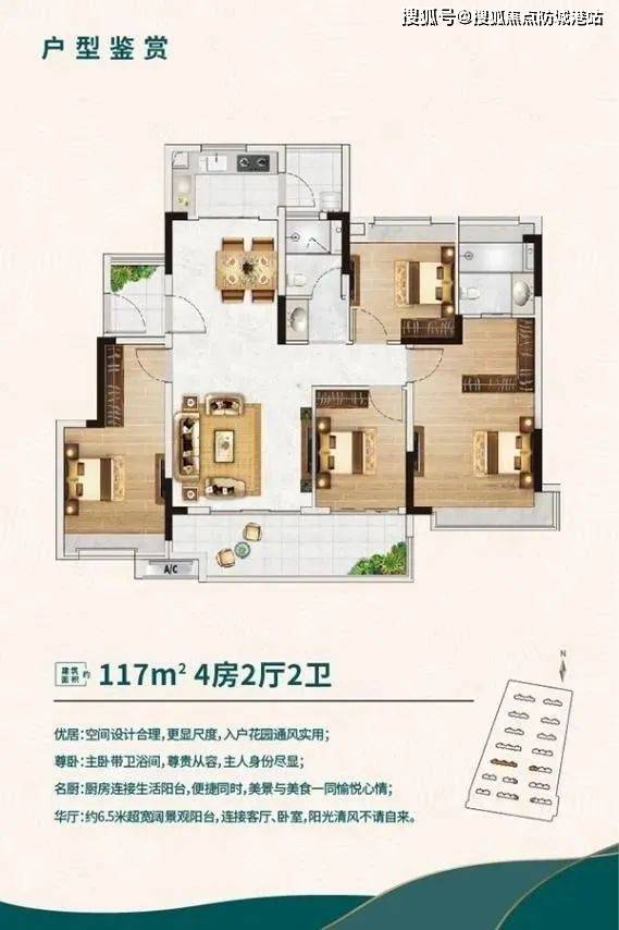 4⃣ 华厅:客厅、餐厅双厅一体化,大开间景观阳台与生活阳台对流,通风舒畅。
