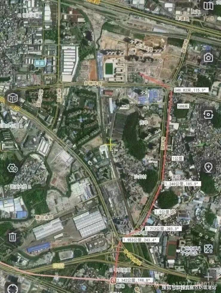 目前距离最近的地铁站是5号线鱼珠站,直线距离约2.4公里,骑行约11分钟;西侧13号线二期珠村站距离约2.7公里,骑行约13分钟。步行确实不现实,需要通过共享单车或短途接驳解决“最后一公里”。