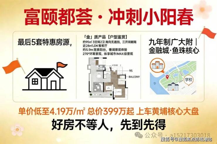 综上所述,富颐都荟凭借其黄埔区总价380万起买南向三房的超高性价比,新规100%+黄广附名校九年一贯制的教育壁垒,以及30万方综合商业体的成熟配套,成为了鱼珠CBD区域不可多得的优质资产。尽管在交通接驳上存在一定挑战,但其核心的地段价值、产品力和教育确定性,足以抵消这些瑕疵。