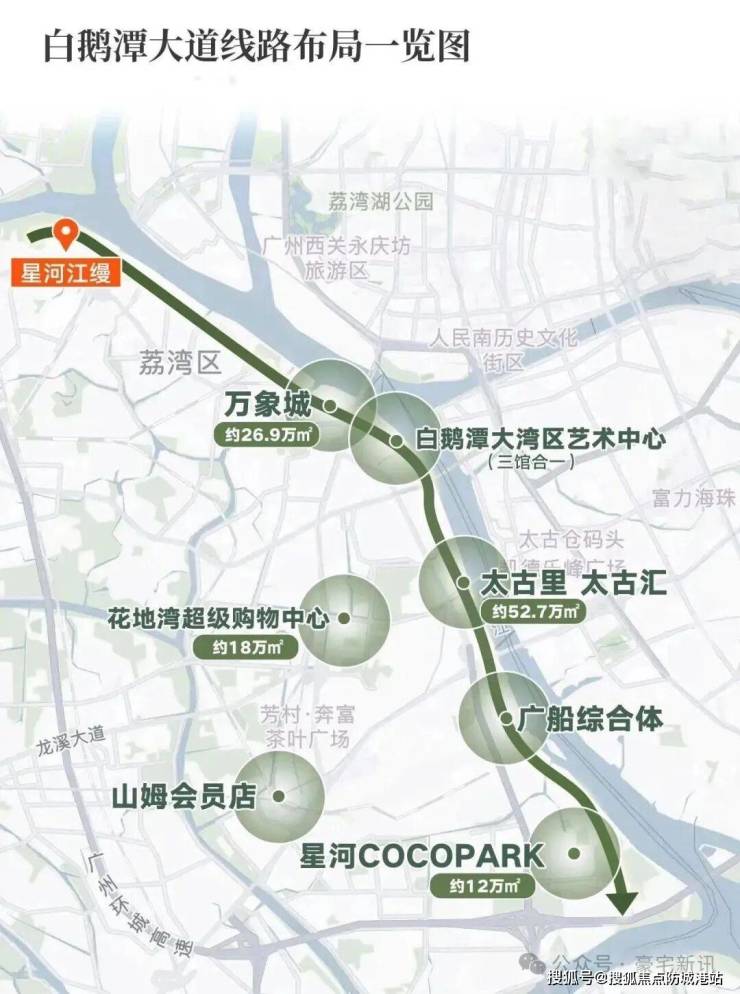 地段,始终是决定房产价值的核心要素。而星河江缦所处的位置,正是广州未来十年乃至二十年最具想象力的空间之一——白鹅潭中央商务区(CBD)。根据广州市政府发布的“十四五”规划,白鹅潭CBD的整体规划范围达到了惊人的36平方公里,这一面积约为珠江新城的6倍,其体量之宏大、规划之超前,在广州的城市发展历程中实属罕见。项目总投资规模超过1500亿元,涵盖了1个核心功能区以及11个功能组团,构建了以总部经济、医药健康产业和新兴服务业为三大支柱的现代化产业体系。