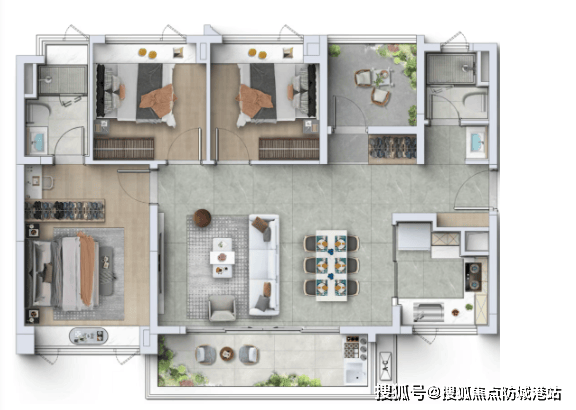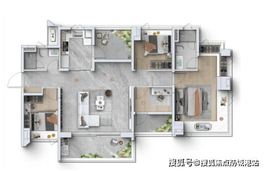 亮点四,更好户型,新一代户型,近100%使用率,高赠送户型,同等面积享更大尺度。新规产品在户型设计上进行了全面升级,充分考虑业主的居住需求,打造近100%使用率的户型,高赠送空间,让同等面积的户型拥有更大的空间尺度,提升居住舒适度与实用性。无论是客厅、卧室,还是厨房、卫生间,都经过精心设计,布局合理,空间利用率极高,让每一寸空间都能得到充分利用。