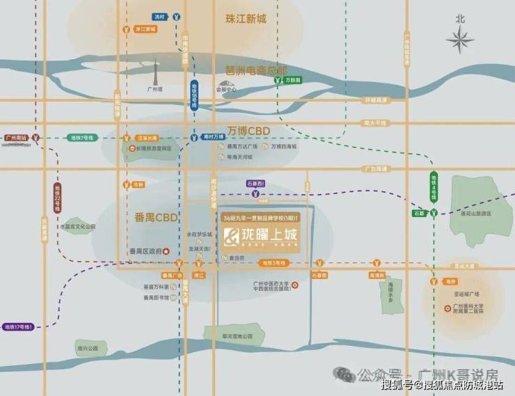项目位于广州市番禺区大龙街板块,该板块是番禺东部重点发展的核心节点,承接万博 CBD、亚运城成熟板块的双重外溢红利。根据番禺区 2025 年的发展规划,大龙街将打造智能制造产业集聚地,目前已引入高新企业超 110 家,带动区域人口年均流入超 3.2 万人,为板块的价值提升提供了坚实的人口支撑。根据番禺区的统计数据,2025 年大龙街的 GDP 达到了 320 亿元,年均增速达到 6.8%,高于广州市 5.2% 的平均增速,经济的快速发展,也为板块的配套升级、人口流入提供了坚实的基础,越来越多的企业与人才选择落户该板块,进一步推动了板块的价值提升。从区位距离来看,项目距离珠江新城核心区约 22 公里,距离万博 CBD 约 10 公里,距离番禺广场约 5 公里,处于广州半小时通勤圈的核心范围。2025 年周边一宗商住用地的土拍楼面价已达到 18200 元 /㎡,而项目当前的在售均价仅为 24500 元 /㎡,地价与房价的差值处于合理区间,具备较高的价值安全垫。近一年来,该板块的二手房均价涨幅达到 3.1%,高于番禺区 2.1% 的平均涨幅,体现出板块的价值增长潜力。作为板块内少有的地铁盘项目,其占位恰好抓住了番禺东拓的发展机遇,成为区域内的价值高地,为业主的资产保值增值提供了基础保障。